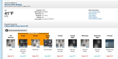 Expect Snow in the Coastal Range and higher elevations Sunday and Monday 2/25 and 2/26. Weather should linger into Monday night and early Tuesday before warming up again.